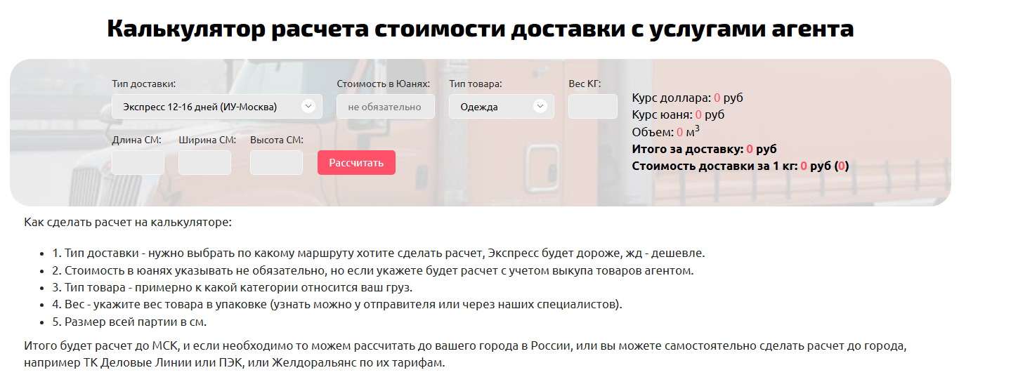 Кстати вы можете рассчитать стоимость доставки у нас на сайте так как у нас в разделе доставка / Китай есть Калькулятор:
